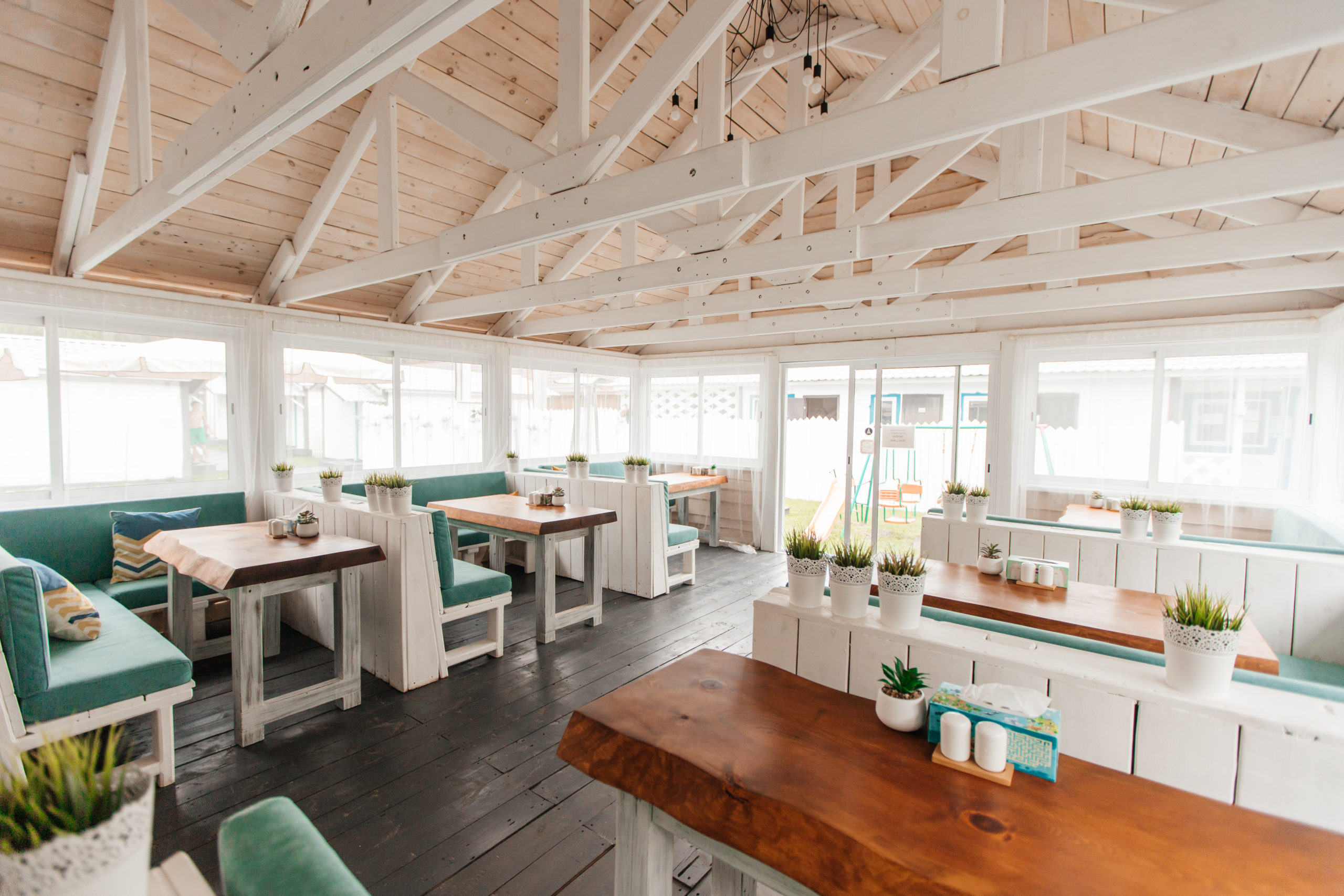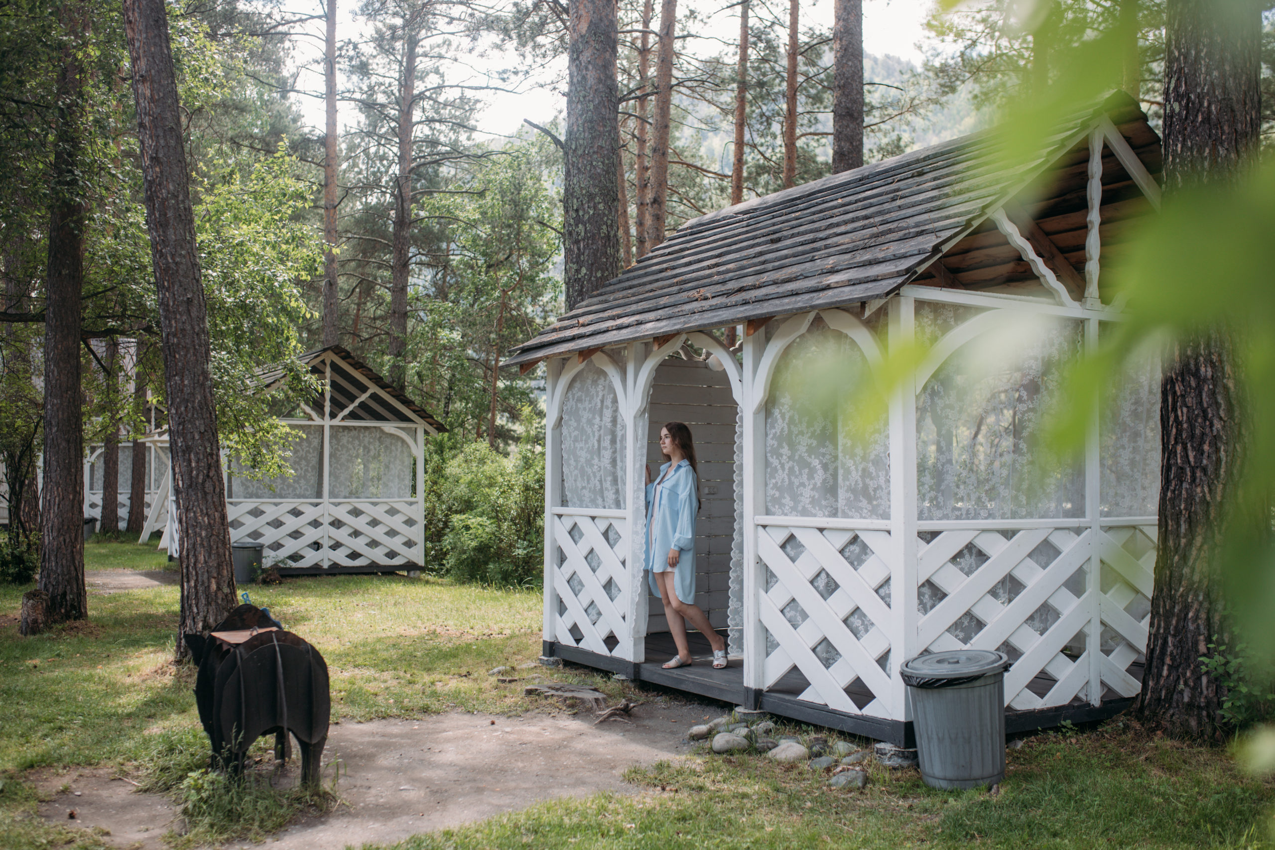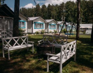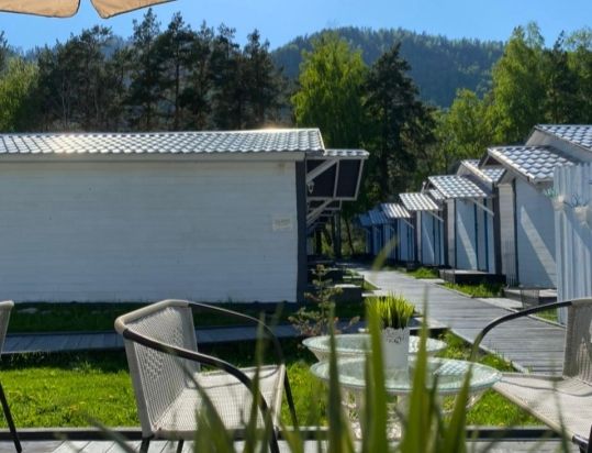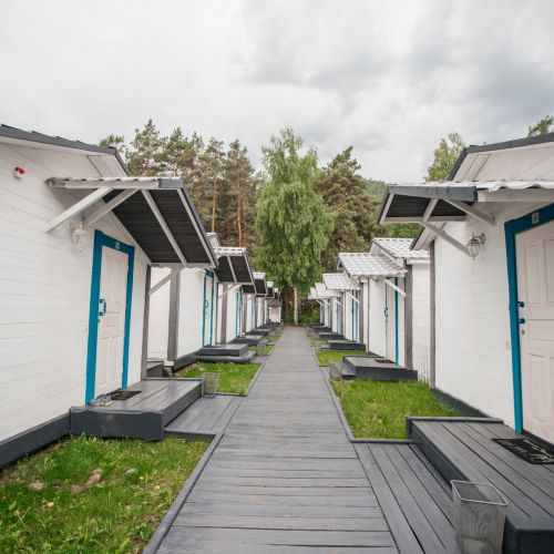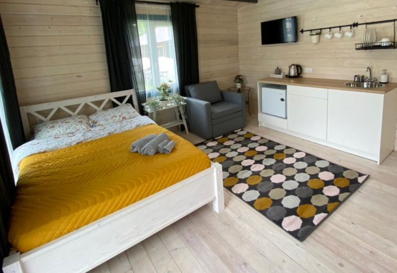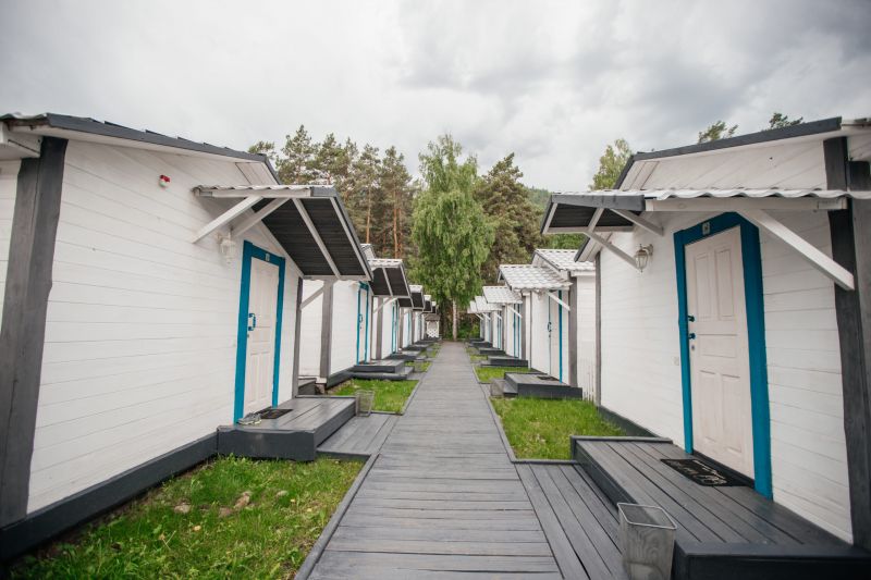 Комплекс занимает небольшую уютную территорию, окруженную хвойным лесом. В распоряжении гостей 17 отдельно стоящих одноэтажных домиков, интерьеры которых выполнены в стиле прованс. В каждом имеется собственный санузел с душем, мини-кухня и необходимая бытовая техника, в некоторых домиках есть открытая меблированная терраса.