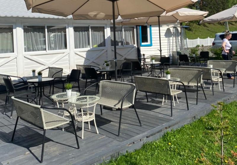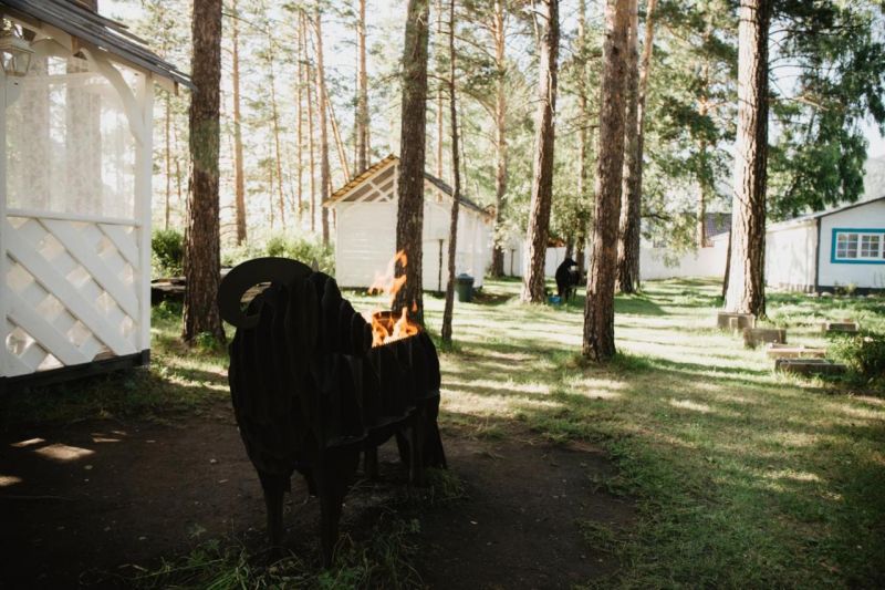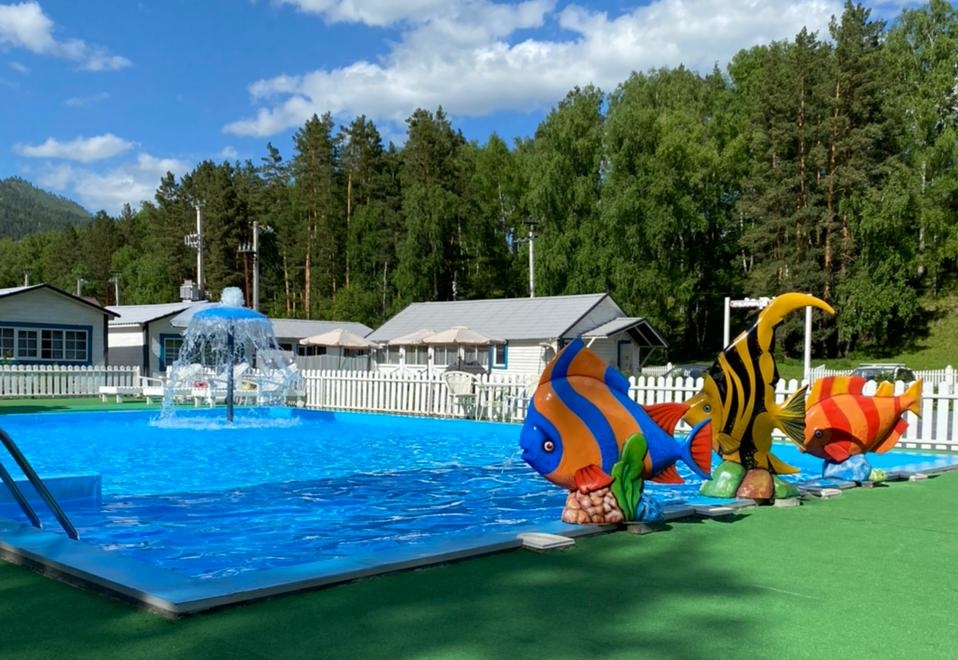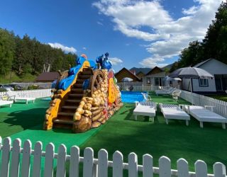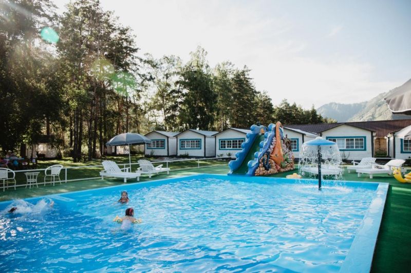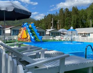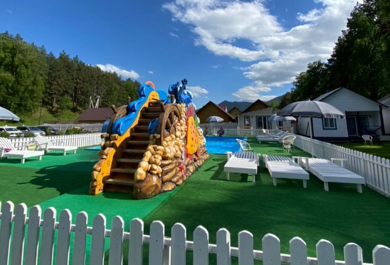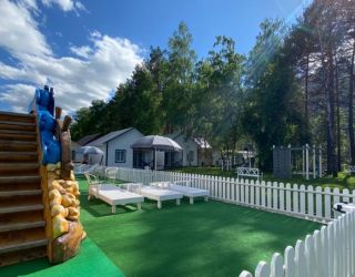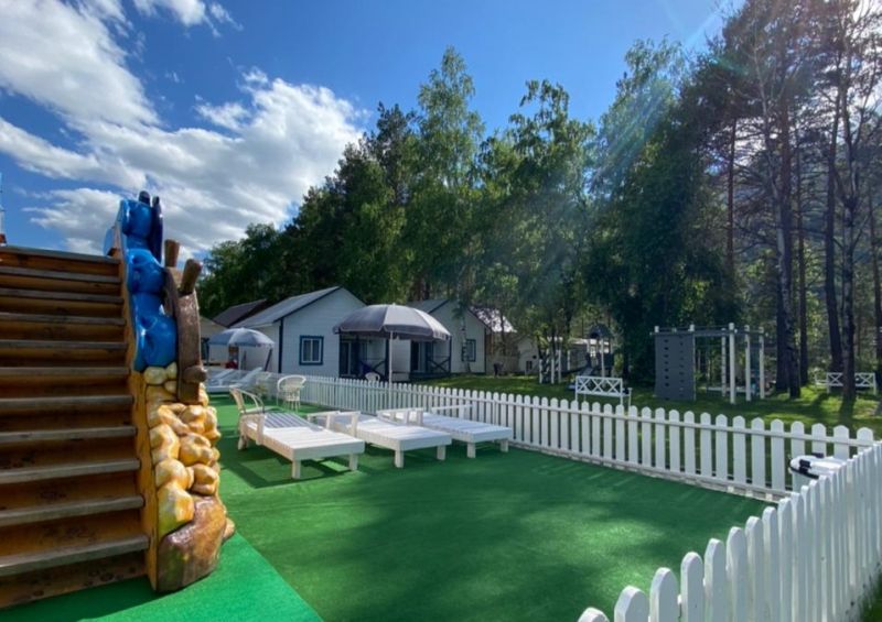 На территории работает кафе, организованы 4 зоны барбекю с мангалами, скамейками и столиками. Летом отдыхающим доступен открытый бассейн с водной горкой, рядом установлены шезлонги для загара, есть баня-бочка. Для автовладельцев предусмотрена парковка, оснащенная камерами видеонаблюдения. Юные гости могут провести время на детской площадке, также имеется спортивный батут.